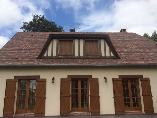Sur cette réalisation, nous avons conseillé le client de faire une toiture en petites tuiles plates. En effet, la tuile se marie très bien avec le charme de la maison, ce qui donne un résultat qui a totalement séduit nos clients.